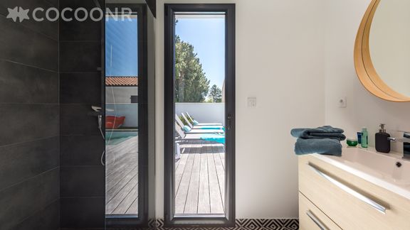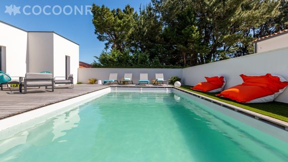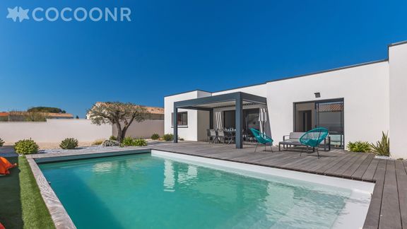 Promesse de vacances inoubliables, Saint-Palais-sur-Mer sera la destination rêvée pour allier détente et loisirs au grand air. Entre ses plages de sable fin, ses carrelets, ses villas Belle Epoque et ses festivités estivales, vous tomberez sous le charme. Nous vous proposons cette sublime villa contemporaine à la décoration épurée, composée d'un salon séjour avec cuisine ouverte, de 3 belles chambres, dont une suite parentale avec salle d'eau privative et dressing, ainsi que d'un jardin clos, de 300 m², aménagé avec sa terrasse en bois et sa magnifique piscine privée et chauffée. Idéal pour 6 adultes et 2 enfants. Draps et serviettes inclus, nous n'attendons plus que vous !