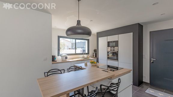 - Cuisine ouverte et entièrement équipée : îlot central avec mange debout, lave-vaisselle, four, plaques de cuisson, réfrigérateur, micro-ondes, grille-pain, cafetière Nespresso, bouilloire, vaisselle et couverts.