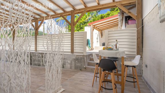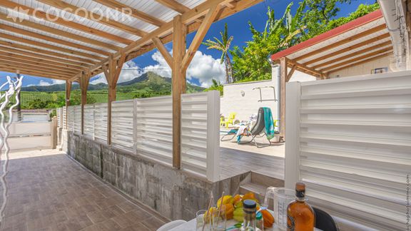 - Une terrasse de 8 m² avec étendoir à linge et mobilier pour profiter des beaux jours et une vue imprenable sur la montagne Pelée (depuis la piscine), inscrite récemment au patrimoine de l'UNESCO.