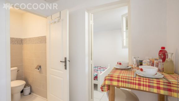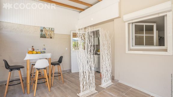 La photo de l'annonce est trompeuse. Si nous avions su que le logement se trouvait en contrebas de la piscine, au bout de l'abri où sont stationnées les voitures du propriétaire, avec coin repas à 1 mètre du capot, nous ne l'aurions certainement pas retenu !