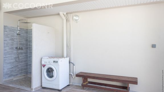 La machine à laver de 7 kg est accessible via la plage de la piscine.
