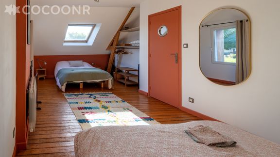 - Chambre 3 : un lit double (140×190) et un lit queen-size (160×200)