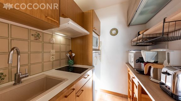 - Une kitchenette équipée avec notamment : bouilloire électrique, four, four à micro-ondes, grille-pain, plaques de cuisson, réfrigérateur avec compartiment congélateur…