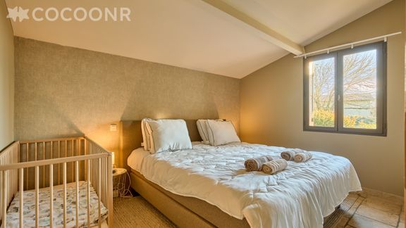 - Chambre 2 : avec 1 lit king-size (180×200) et un lit simple