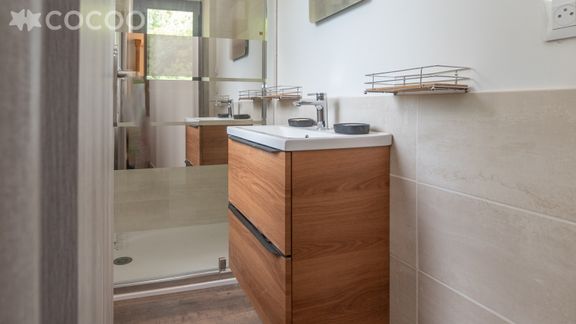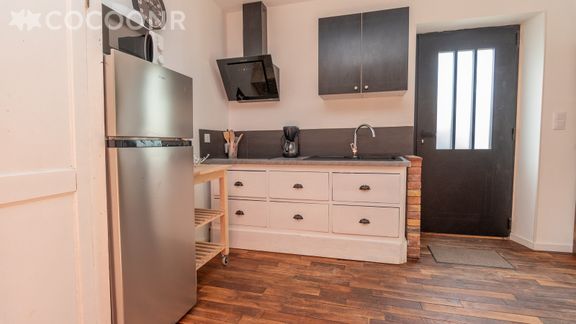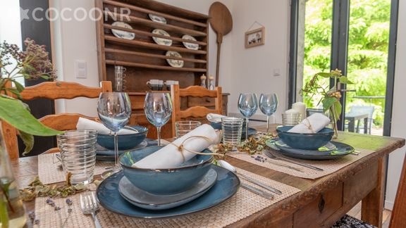 - Une cuisine équipée avec notamment : bouilloire électrique, four à micro-ondes, grille-pain, plaques de cuisson...