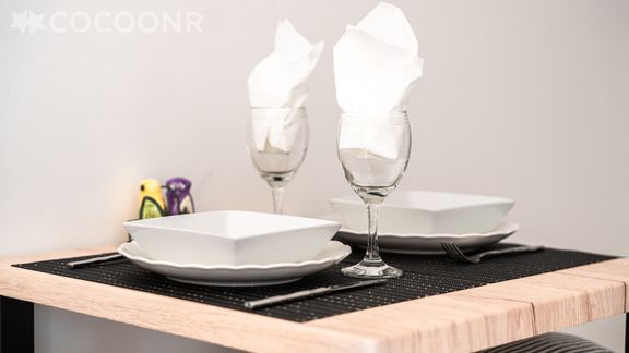 - Une kitchenette équipée avec notamment : bouilloire électrique, four, four à micro-ondes, grille-pain, plaques de cuisson...