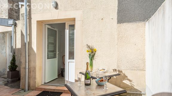 - Une cour ensoleillée, fermée et aménagée avec du mobilier d’extérieur pour profiter d'un moment de détente au soleil. L'espace dispose d'un droit de passage pour le voisin.