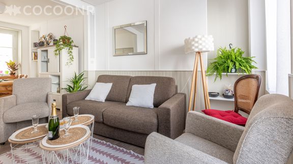 - Une belle pièce de vie lumineuse avec un coin salon doté d'un canapé-lit double, des fauteuils, une table basse, une TV ainsi qu'un espace repas avec une table à manger pouvant accueillir 6 convives.