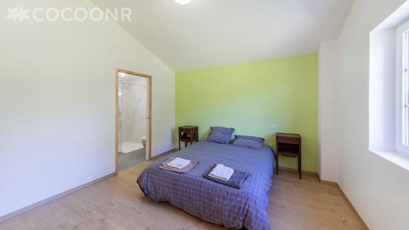 - Chambre 1 : Un lit queen-size avec une salle de bain avec baignoire et WC attenant