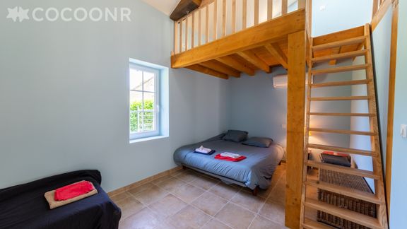 - Chambre 3 : Une mezzanine avec un lit double et trois lits simples