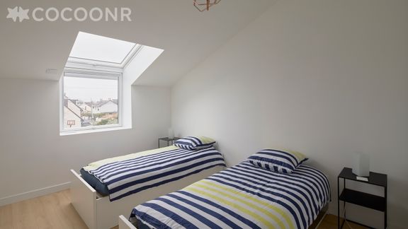 - Chambre 1 : avec un lit double (140×190) et sa salle d'eau attenante (avec douche).