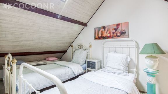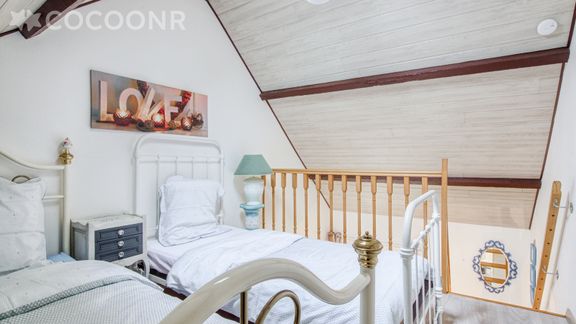- Accès à la mezzanine par un escalier où vous trouverez un espace nuit avec 2 lits simples.