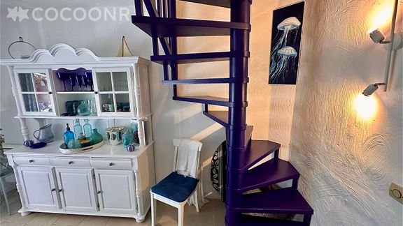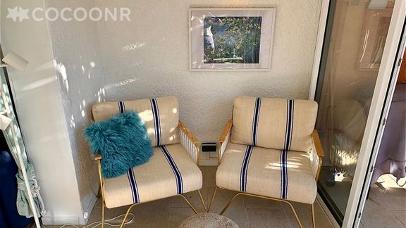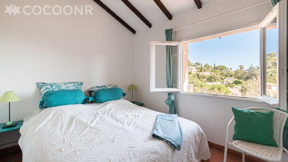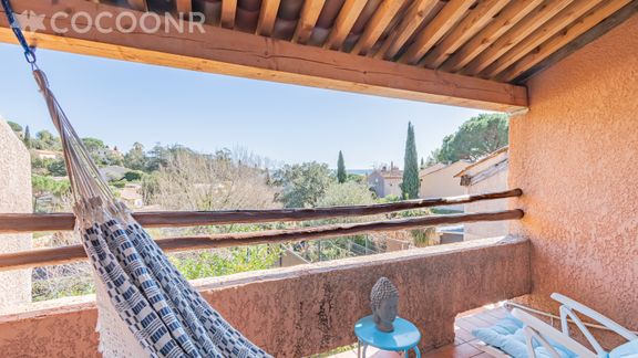 Nice place to stay situated between Saint Maxime and Port Grimaud. Beach is very close by and both cities are walkable. Place is clean with beautiful views. Staircase is winding and narrow, not good for small children. Beautiful terrace with electric grill and small balcony with bedroom was very nice