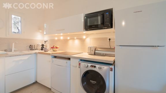 Pour encore plus de confort : lave-linge, plancha, lit bébé, chaise haute, table et fer à repasser.