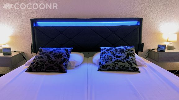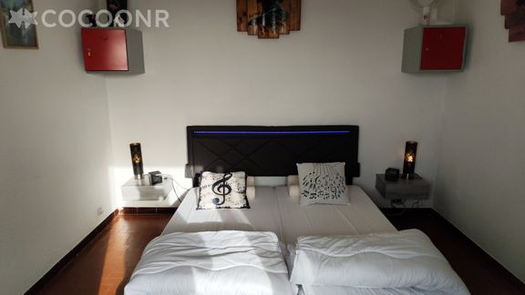 - Chambre 1 : deux lits simples (80x200) et une TV avec lecteur Bluray.