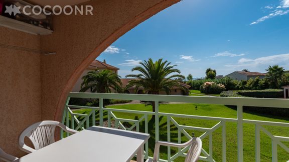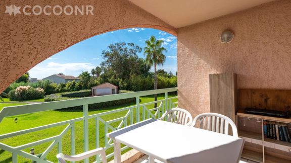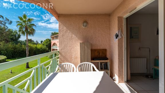 - Balcon couvert de 9 m² exposé est pour profiter du soleil matinal, aménagé avec une table à manger pour 4 convives et 2 chaises longues, plancha. Vous apercevrez la mer depuis le balcon !