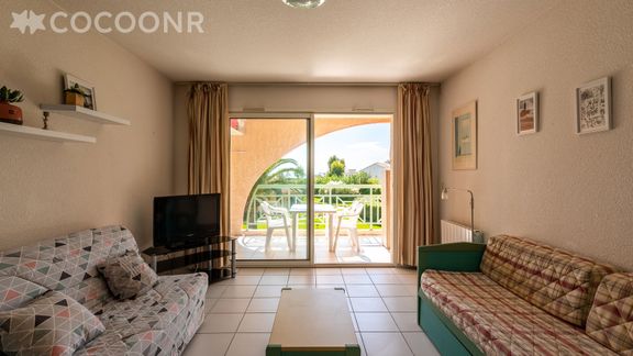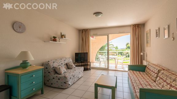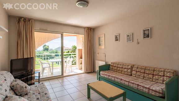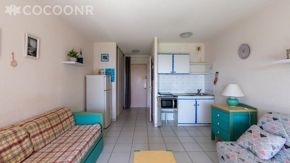 L'appartement se compose d'une pièce de vie avec kitchenette, coin salon avec deux canapés convertibles en lits, salle de bain avec baignoire. Terrasse couverte.