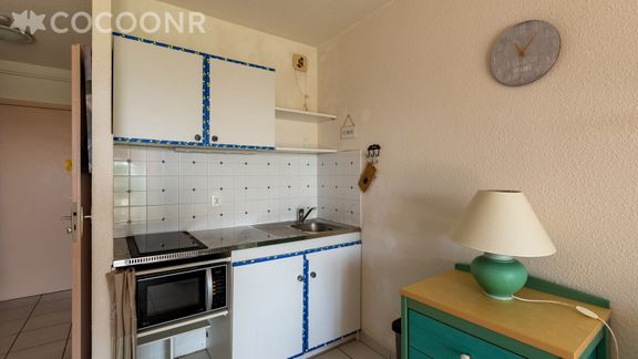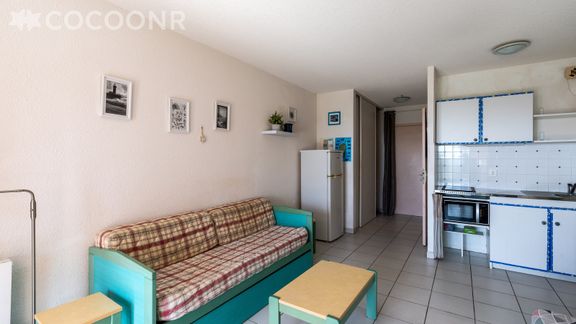 Vous profiterez d'un studio de 28 m², au sein d'une résidence privée, au calme, à deux minutes à pied de la plage, avec un accès gratuit à la piscine.