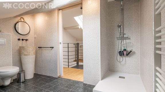 - Grande salle d'eau avec douche à l'italienne, sèche-serviettes et WC