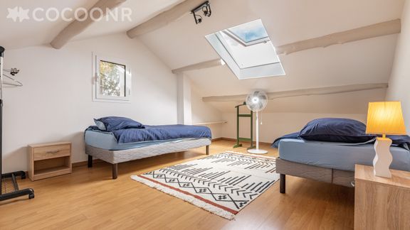 Située dans un quartier calme et verdoyant, elle peut accueillir jusqu'à 8 voyageurs et se compose d'une pièce à vivre, d’une loggia attenante, d’une cuisine équipée, de 4 chambres et de 2 salles d'eau. Jardin clos d'environ 3 000 m², partagé avec un appartement dont une partie est privative pour la maison. Draps et serviettes (1 drap de bain + 1 moyenne) fournis. Wifi gratuit. Portail à digicode.