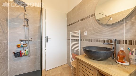 - Salle d'eau avec douche à l'italienne et sèche serviettes et WC