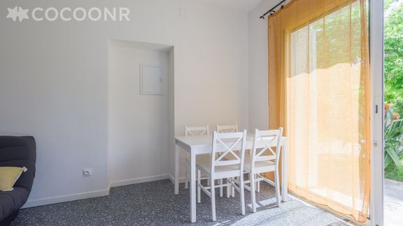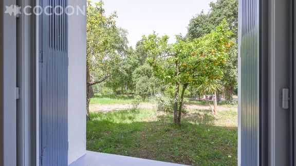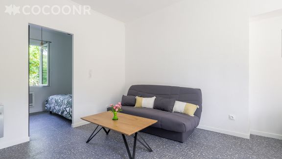 - Le logement possède un espace jardin privatif arboré et aménagé avec mobilier de jardin, au sein d'un terrain clos d'environ 3 000 m² partagé avec les locataires de la maison.