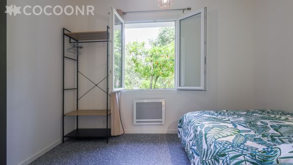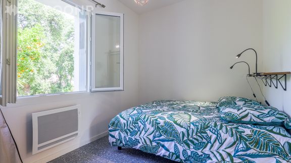 - Chambre lumineuse équipée d'un lit double (140 x 200) donnant directement sur le jardin.