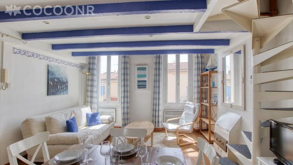 L'agence Cocoonr/Book&Pay vous propose à la location, à Sanary-sur-Mer, ce charmant appartement climatisé situé directement sur le port à seulement 5 minutes à pied de la plage, d’une superficie de 43 m² et pouvant accueillir jusqu’à 4 voyageurs. Situé au 3éme étage (sans ascenseur), il se compose d’une jolie pièce à vivre de 23 m², d'une cuisine ouverte équipée, d’une belle chambre et d'une salle d'eau avec douche.