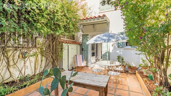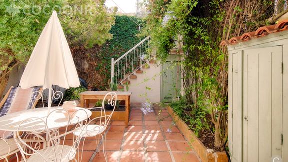 - Jardinet extérieur et arboré de 30 m² exposé EST. Le jardinet est aménagé avec un salon de jardin (une table et quatre chaises en fer forgé), parasol, barbecue électrique Weber, douchette extérieure...