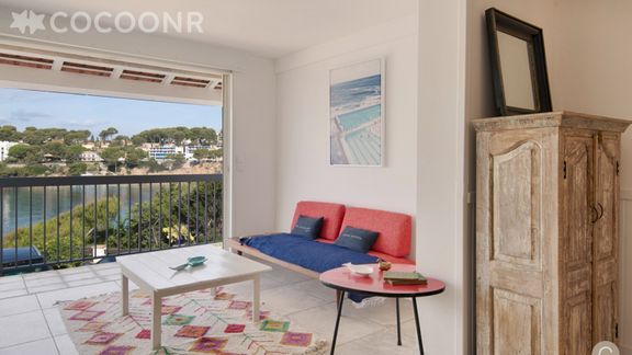 - Balcon de 6 m² avec vue mer sur la Baie de Portissol. Le balcon est muni d'un escalier qui vous donnera accès au parking, et au portillon qui vous offrira un accès direct à la mer, avec transat à disposition !