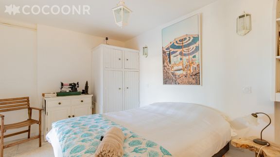 - Chambre 2, climatisée et avec vue sur mer : un lit queen-size (160 cm x 200 cm), rangement.
