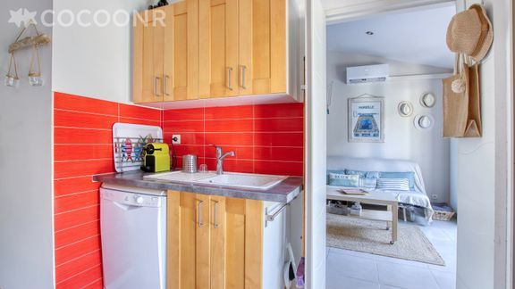 Nous vous proposons à la location, à Sanary-sur-Mer, ce charmant appartement climatisé à moins d’un kilomètre de la plage, d’une superficie de 42 m² et pouvant accueillir jusqu’à 4 voyageurs. Situé au rez-de-chaussée, il se compose d’une jolie pièce à vivre de 20 m², d'une cuisine équipée, d’une belle chambre et d'une salle d'eau (avec douche). Wifi, draps et serviettes inclus, nous n’attendons plus que vous !