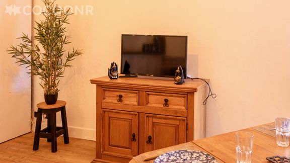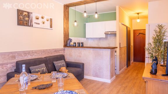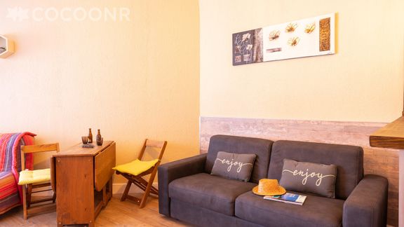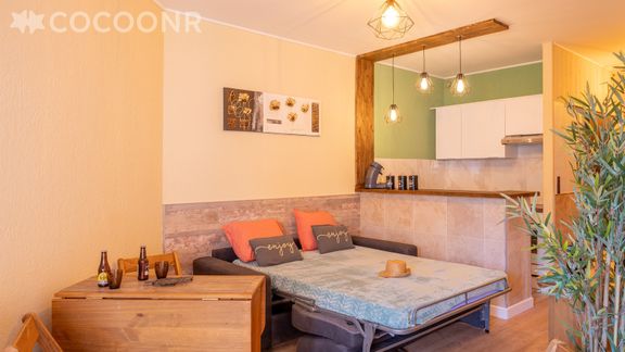 - Une pièce de vie de 30 m² avec TV, coin repas et espace nuit avec deux canapés-lit double