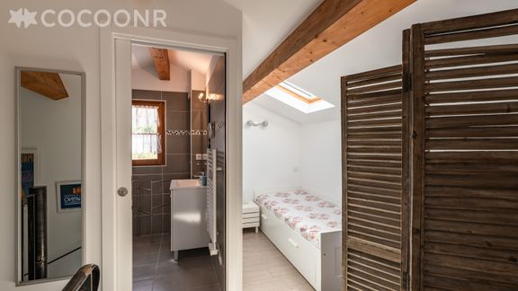 - Une alcôve sous laquelle vous trouverez un lit simple