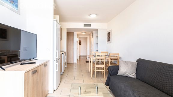 - Une pièce de vie de 35 m² avec TV, canapé, coin repas
