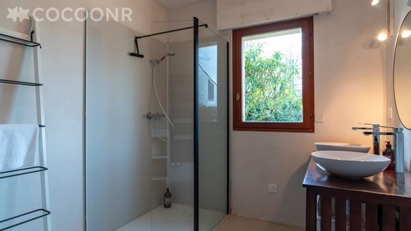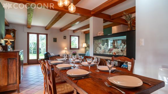 Elle est composée d'une jolie pièce à vivre de 40 m², cuisine équipée, de cinq belles chambres, deux salles de bain (avec douche et baignoire) et vous pourrez profiter d'un jardin d'environ 800 m². Le ménage est inclus dans la location et du linge de qualité hôtelière 4* vous est fourni (draps, serviettes de toilette, torchons), votre lit sera préparé à votre arrivée.