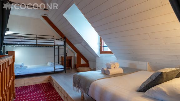 - Un espace couloir dortoir avec 1 lit double (140x190) et lits superposés idéal pour les enfants