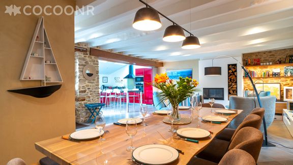L'agence Cocoonr/Book&Pay vous propose à la location cette charmante maison à Saint-Colombier, à 4 km de Sarzeau. Située dans une impasse, au calme, vous serez séduits par son joli jardin arboré, sa belle pièce de vie avec cuisine ouverte toute équipée et ses 4 chambres spacieuses. Connexion WiFi, linges de lit et de toilette compris, les lits seront faits à votre arrivée. La maison sera l'endroit idéal pour un séjour en famille ou entre amis, pouvant accueillir jusqu'à 8 personnes confortablement.