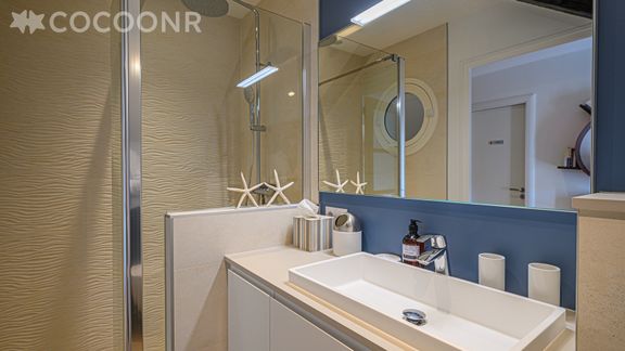 - Une salle d'eau équipée d'une douche à l’italienne et double vasque ainsi qu'un WC séparé