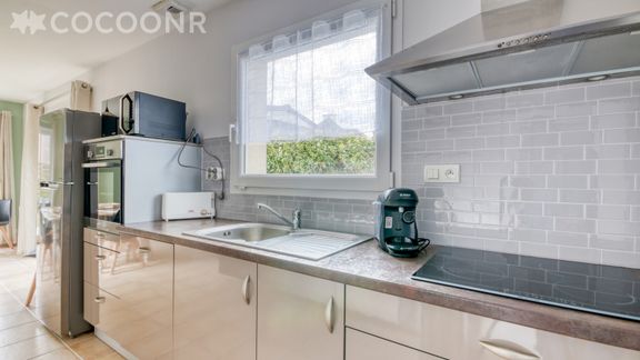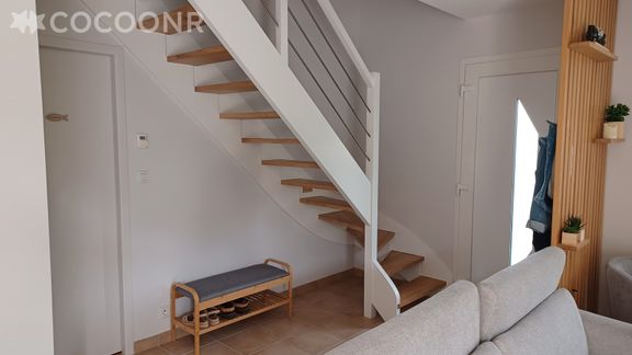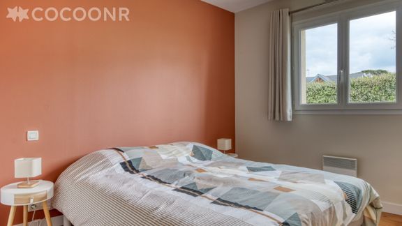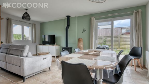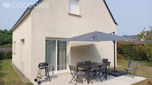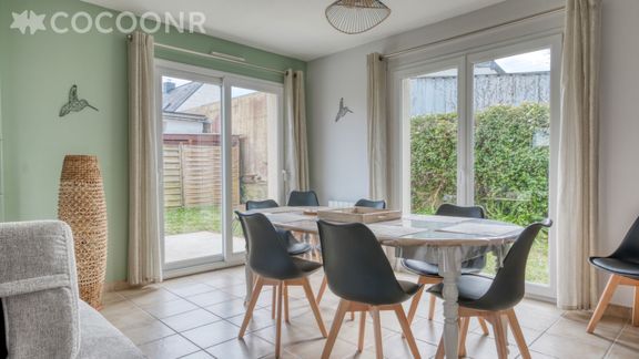 L'agence Cocoonr/Book&Pay vous propose à la location, à Sarzeau, cette charmante maison d’une superficie de 80 m² et pouvant accueillir de 6 à 8 voyageurs. Elle est composée d’une jolie pièce à vivre de 30 m², d'une cuisine équipée, de quatre belles chambres, de deux salles d'eau et vous pourrez profiter d’un jardin d’environ 130 m².
