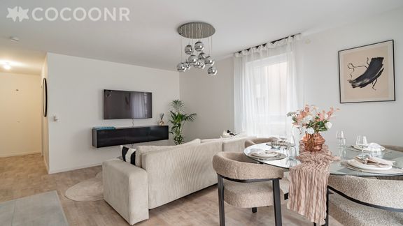 - Une pièce de vie de 29 m² avec TV, canapé et espace salle à manger