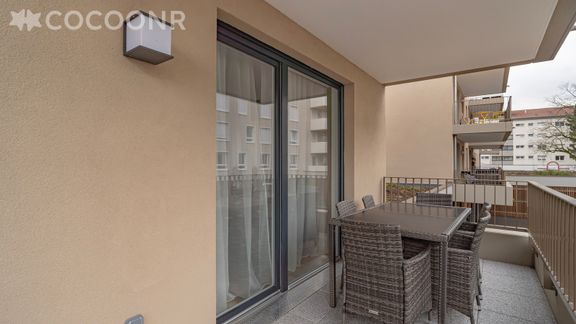 - Un balcon de 8,9 m², exposé sud de façon à bénéficier d’une bonne luminosité naturelle une grande partie de la journée, avec mobilier pour profiter des beaux jours.