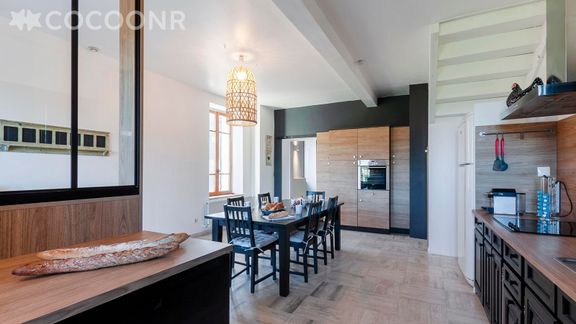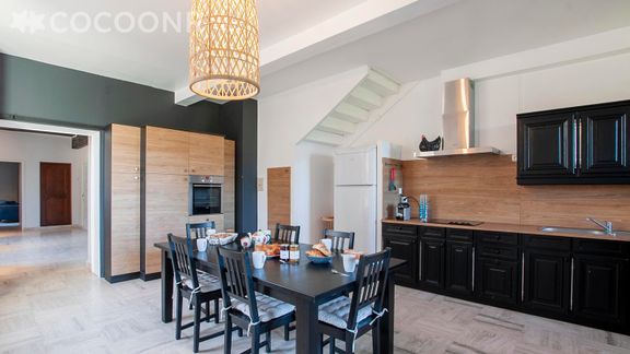 - Cuisine moderne tout équipée : frigidaire, four, micro-onde, plaques, lave-vaisselle, machine Nespresso et cafetière à filtre... Table à manger pour profiter de vos repas en famille ou entre amis.