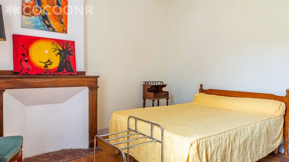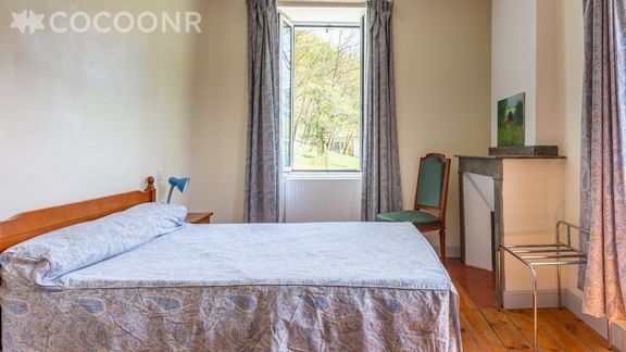 - Chambre 4 avec lit double (140 cm x 190 cm), armoire vitrée et cheminée décorative.