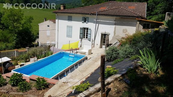 La maison adossée à la colline se trouve dans un quartier calme et sans vis-à-vis, située dans le parc régional des Pyrénées Ariégeoises. Vous trouverez à 300 m, une boulangerie ainsi qu'une petite épicerie.