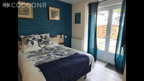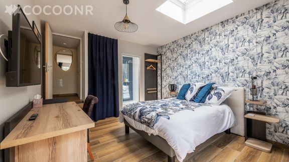 - Une chambre avec un lit double (140×190) et une salle d'eau.