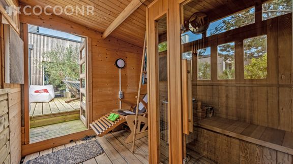 - Un sauna pouvant accueillir 3 personnes, ouvert du 15 Avril au 15 Octobre.