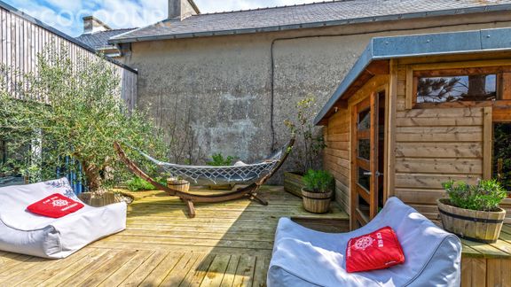 - Une terrasse et un jardin de 450 m², exposés plein sud, complètement clos par palissade, avec une douche extérieure et un mobilier pour profiter des beaux jours.
