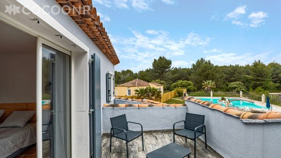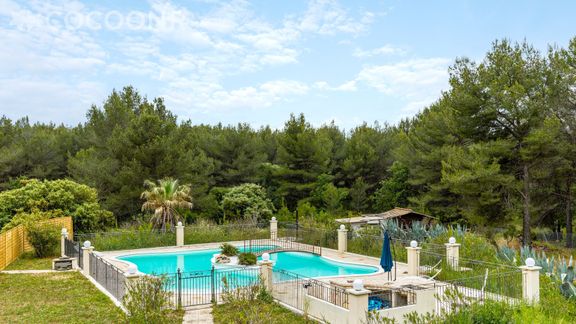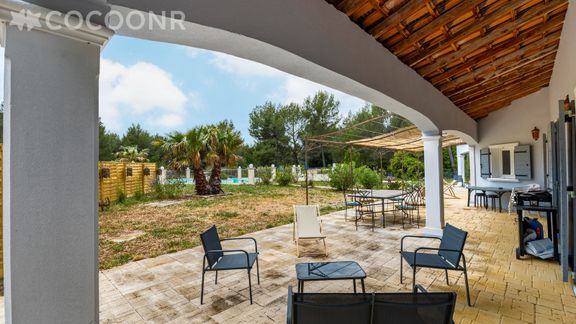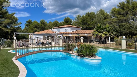 Nous vous proposons à la location, sur la commune de Signes, cette charmante villa avec piscine, d’une superficie de 270 m² et pouvant accueillir jusqu’à 12 voyageurs. Elle est composée d’une jolie pièce à vivre de 50 m², d'une cuisine équipée, de six belles chambres, trois salles d'eau et vous pourrez profiter d’un jardin d’environ 1000 m² ainsi que d'une terrasse. Wifi, ménage, draps et serviettes inclus, nous n’attendons plus que vous !