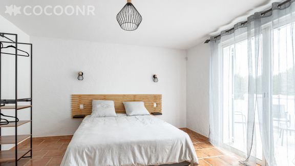 - Chambre 5 : un lit queen-size (160×200) avec un accès à un balcon.